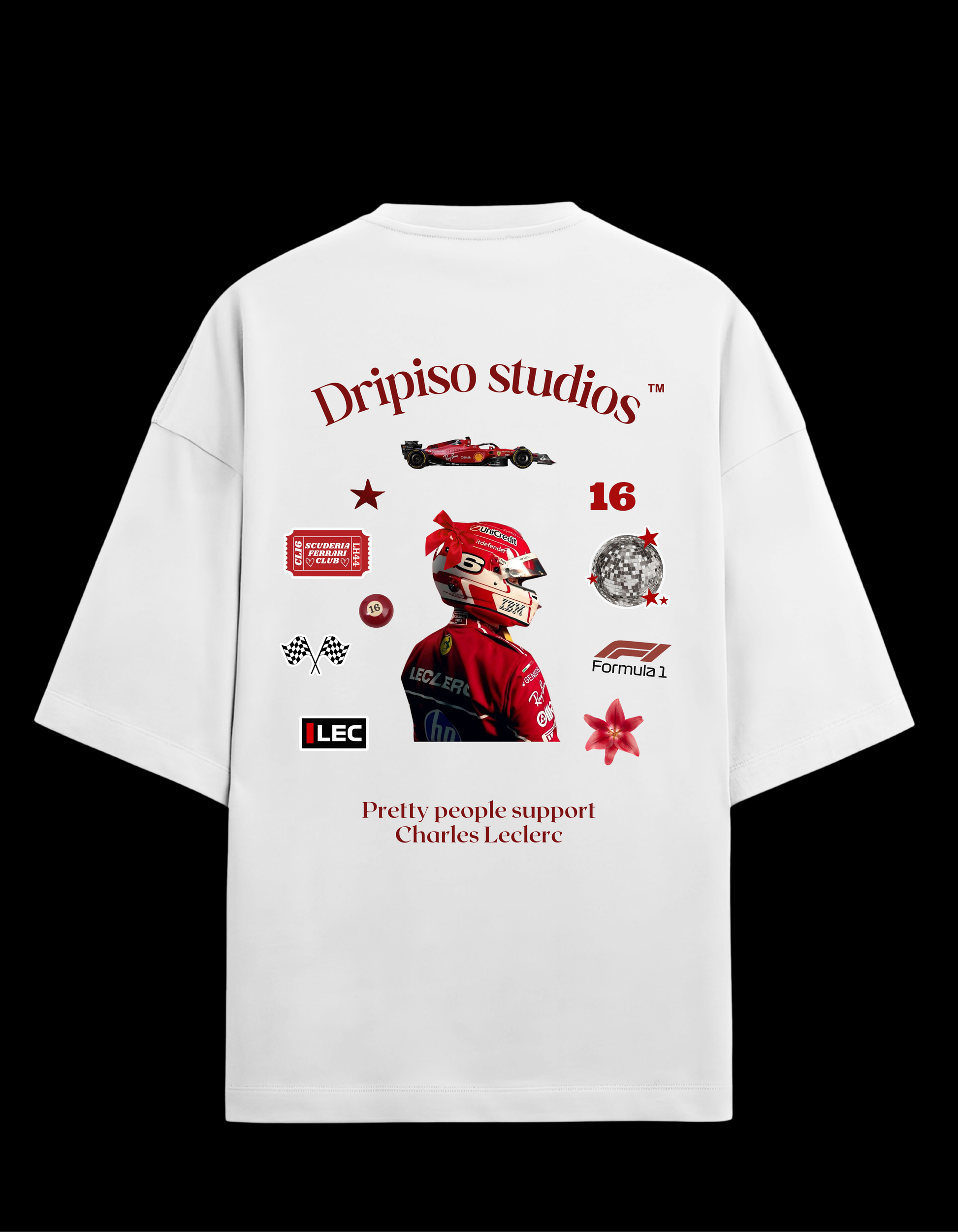 Whether you're at the track or cheering from home, this t-shirt makes a bold statement with its sleek design and tribute to racing icon Charles Leclerc. Built for fans who demand both performance and style.