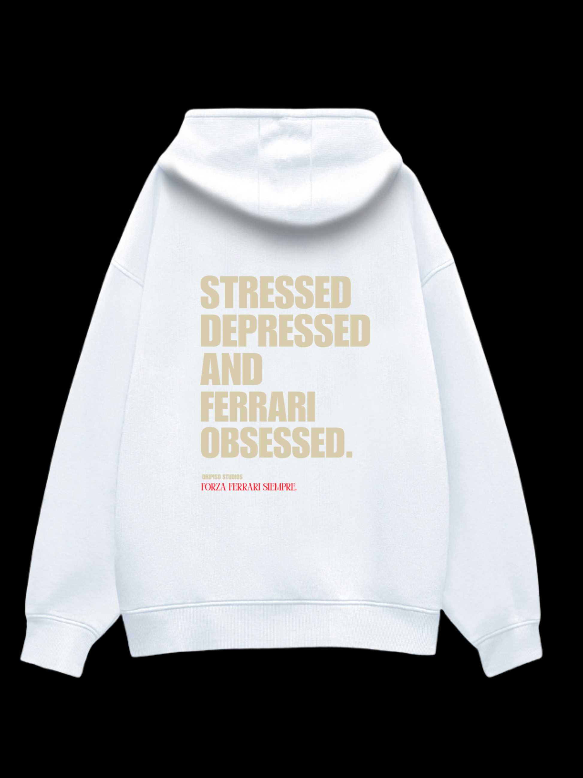 Stressed, Depressed, and Ferrari Obsessed Unisex Oversized Hoodie